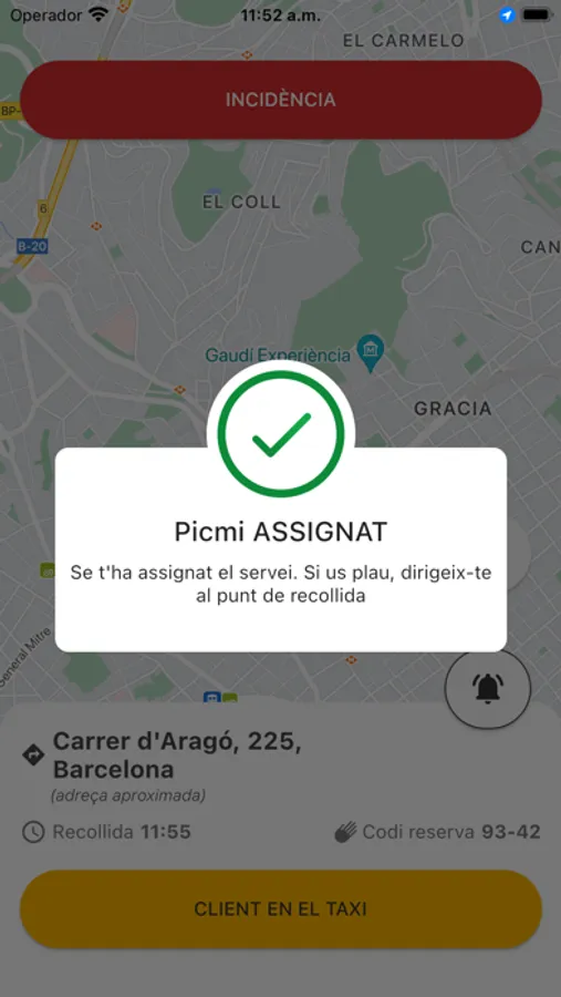 Els conductors de taxi que tinguin un servei Picmi assignat podran veure la ubicació del punt de recollida del client, accedir a la ruta i veure el temps estimat d'arribada. Si en arribar no troben el client, podran enviar un avís per indicar que han arribat al punt de recollida.