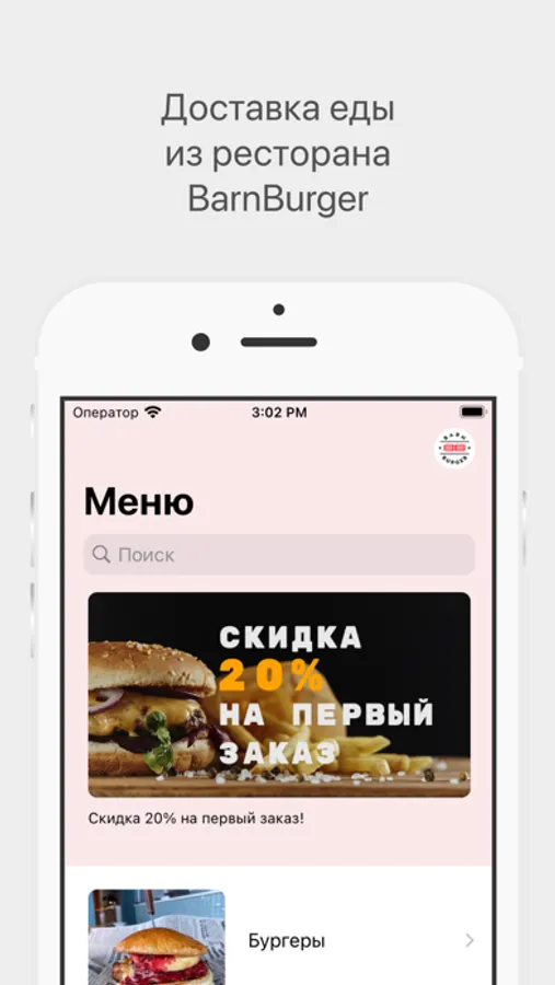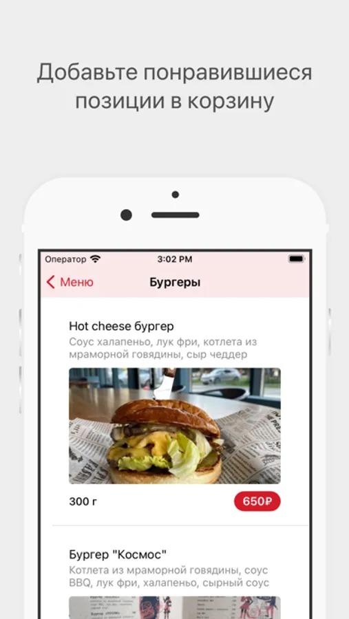 Как сделать заказ в приложении “BarnBurger”: выберите понравившиеся позиции из меню, добавьте их в корзину и перейдите на экран оформления заказа (по нажатию на иконку корзины).