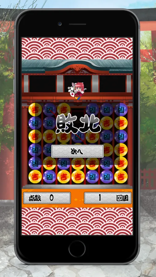 CPU相手に「吉」と「凶」の玉を交互に落としていき、先に玉を4つ揃えれば勝ちといったシンプルな対戦型パズルゲーム。