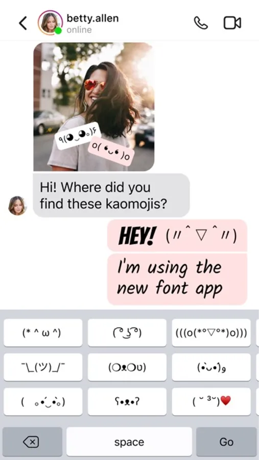 – Express your emotions with the variety of stunning kaomoji-faces;