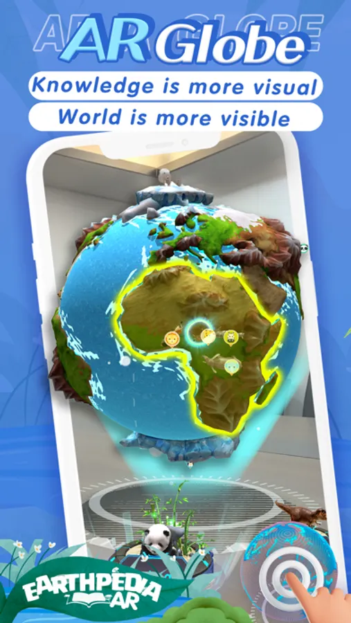 Earthpedia AR uses an Earth model that reinforces the current feature structure of the Earth and is more three-dimensional compared to the standard Earth model. Users can rotate the Earth like a globe when using the Earth feature, and can also zoom in and out to observe every detail. The continents module, located in the center of the screen, also automatically displays highlighting and shows the names of the continents and all things on the current continent at the side borders.