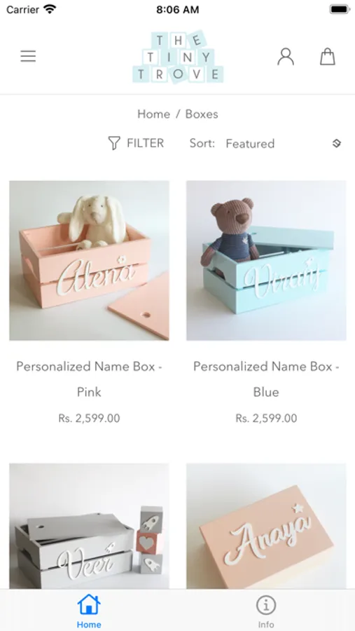 The Tiny Trove is an app where you can order different kinds of decorative items and gifts. You can also put names on our cute boxes, plaques and name blocks and you can also buy shelf decor items like dinosaurs, elephants, camper vans, etc.