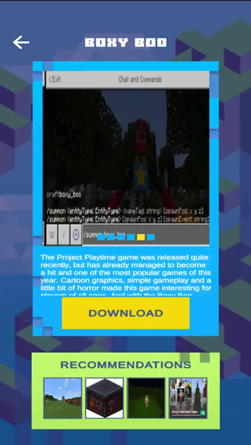 Boxy Boo Mods for Minecraft DISCLAIMER: This is an unofficial application for Minecraft. This application is not affiliated in any way with Mojang AB. The Minecraft Name, the Minecraft Brand and the Minecraft Assets are all property of Mojang AB or their respectful owner. All rights reserved. In accordance with https://www.minecraft.net/en-us/terms#terms-brand_guidelines
