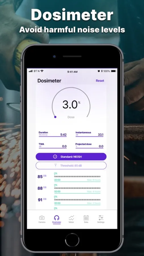 Decibel Meter - Sound Detector is a full featured noise dosimeter. The application contains a professional sound level meter model with a detailed design and extremely convenient operation. Give access to the microphone and discover a compact service with highly reliable pre-calibrated measurements. Your device turns into a sound meter and accurately reads the sound pressure level around you. This extremely useful and handy tool allows you to measure the noise level for professional or personal purposes. Find out how quiet your room is or check the noise level in a football stadium. The app has been tested and pre-calibrated for all Apple devices. Accuracy matches real SPL devices. The service supports full integration with the Health app to track negative vibrations. Professionals will be impressed by the accuracy of the readings and speed of operation, while amateurs will love the simple, intuitive interface that provides one-touch access to all functions. Measure the noise level at home, at work and in public places and get advanced information in a few clicks.