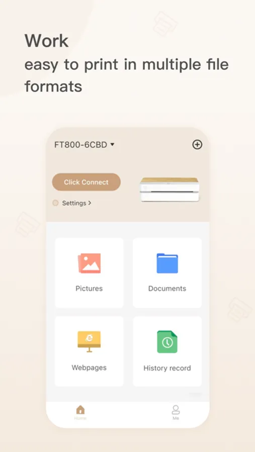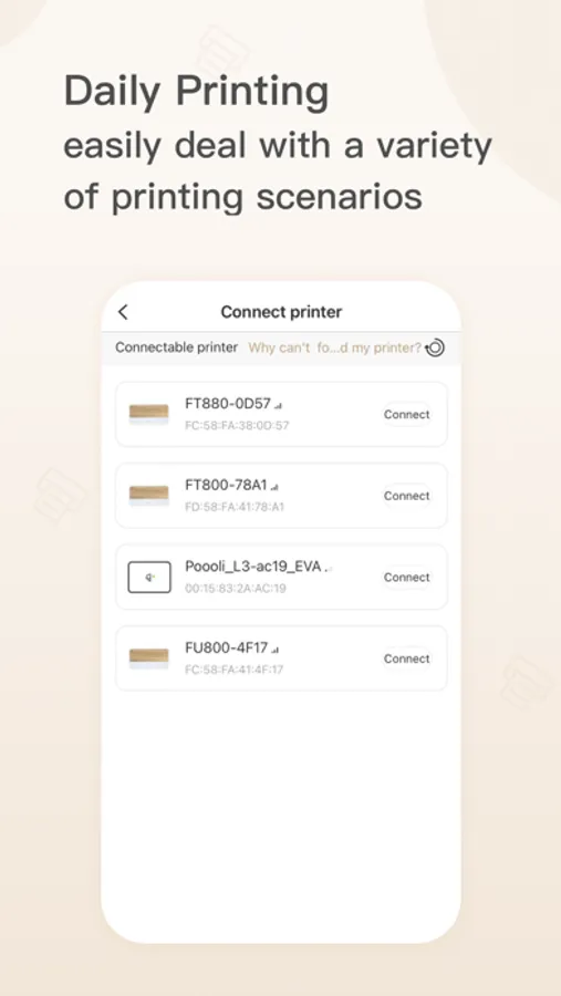 4. Click [Connect Printer] on the home page to select the printing device you want to connect.