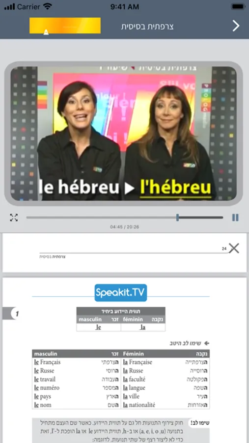 סרטי הווידיאו המלווים את הקורס נועדו לסייע לך בתהליך הלימוד. נוסף על כך שהם יאפשרו לך לשמוע את ההגייה הנכונה, ידוע כי שמיעת המילים והמשפטים היא שיטה בדוקה לזכירה טובה יותר.