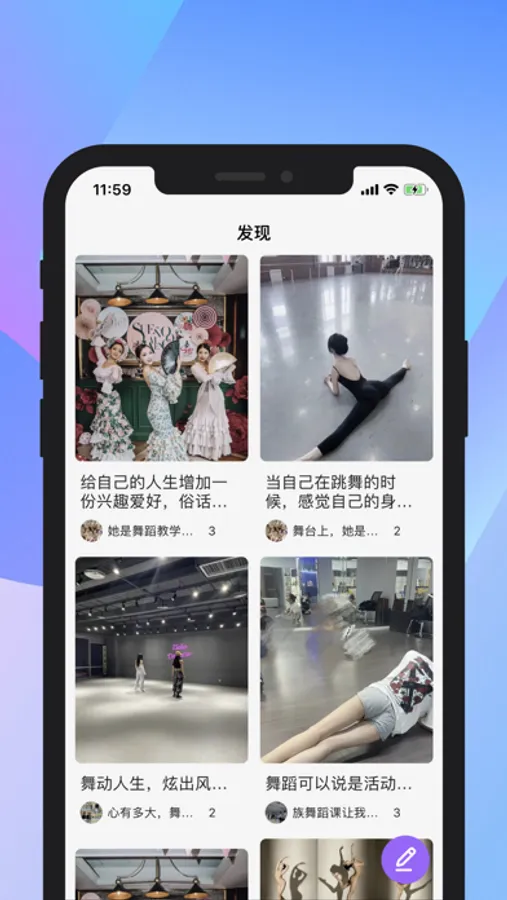 在这里你可以将练习舞蹈的日常分享到此与你的朋友一起讨论跳舞的乐趣。