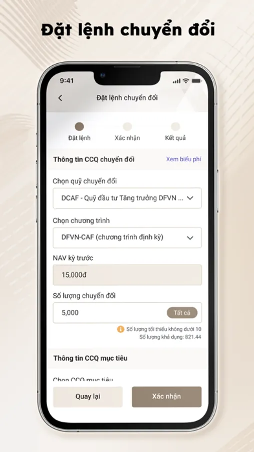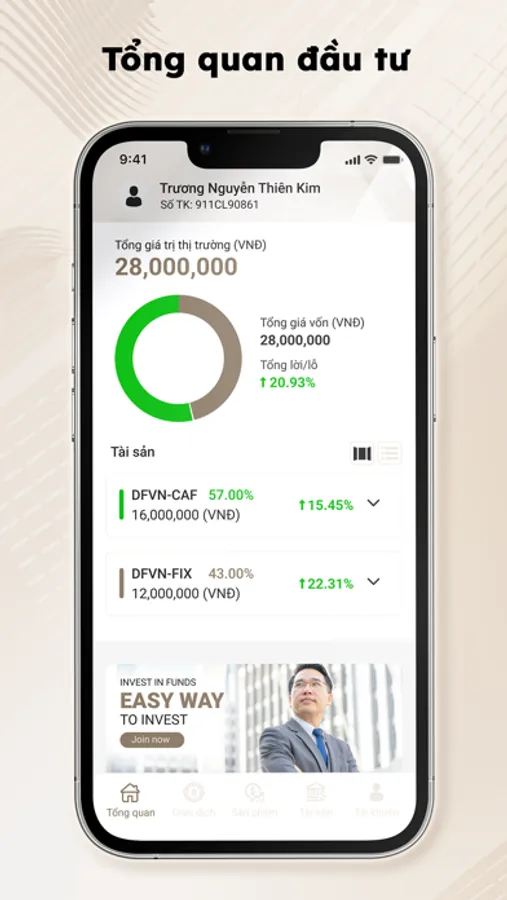 Quý Nhà đầu tư dễ dàng thực hiện mở tài khoản và giao dịch chứng chỉ quỹ thông qua giao diện đơn giản và dễ sử dụng nhằm tối ưu hóa trải nghiệm nhà đầu tư mới.