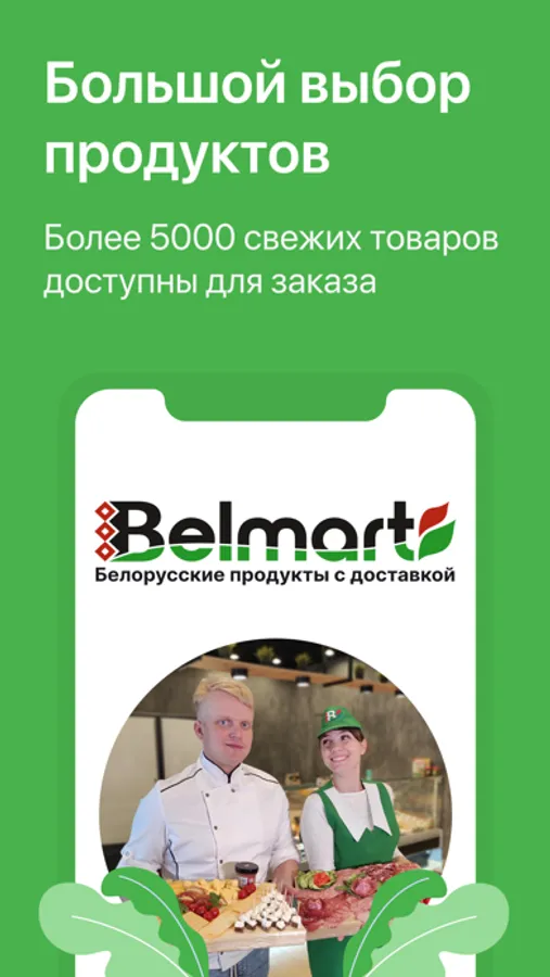 - Оформить доставку в удобное для Вас место и время или самовывоз из ближайшего к Вам магазина сети "Белорусские продукты Белмарт" - проще простого в нашем приложении.