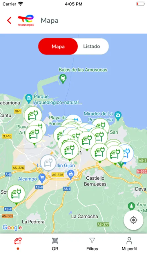 - Ver todos los puntos de recarga de la zona que desees, conocer sus características, tarifas y el estado en que se encuentran.