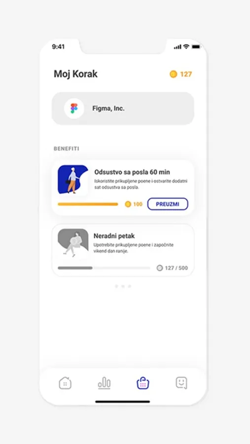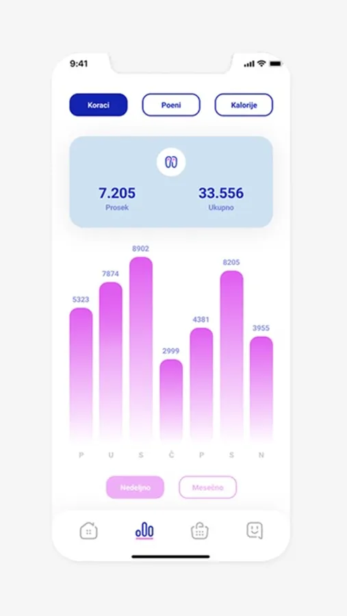 Biznis Korak app is developed in order to provide healthier business environment and increase employee's motivation and productivity. Employees collect points by walking and will be able to exchange them for various benefits provided by the company. App can be used for steps and progress tracking along with benefit management.