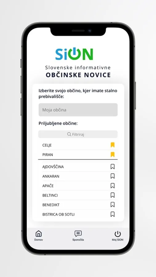 Izberire svojo Občino, ter zaznamujte ostale izbrane občine po svoji izbiri; kjer poslujete, kjer so straši/otroci, vikend,..ali drug interes.