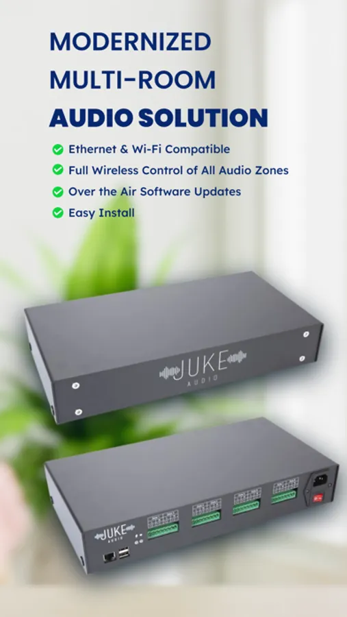 Juke Audio is an all-in-one audio solution for powering and wirelessly controlling architectural speakers across an entire home or building. Accompanying our multi-room amplifiers is the official Juke Audio app for personalized device configuration, input control, and speaker selection.