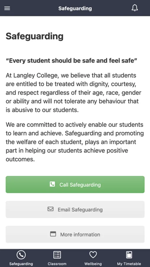 Use the My Langley App to check your timetable, access your targets and view wellbeing information. Use the QR scanner to access QR codes around College. You need a Langley College account to use all the features of this App.