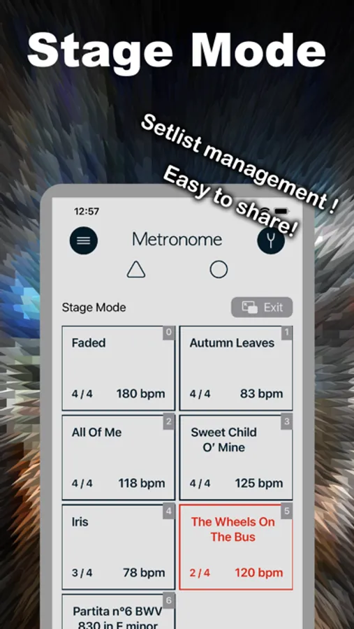 - Easy setlist sharing between fellow musicians via text message, Whatsapp, email etc