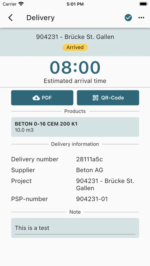 Access delivery notes with descriptions of the deliveries, including the arrival times, supplier info, materials to be delivered, etc.