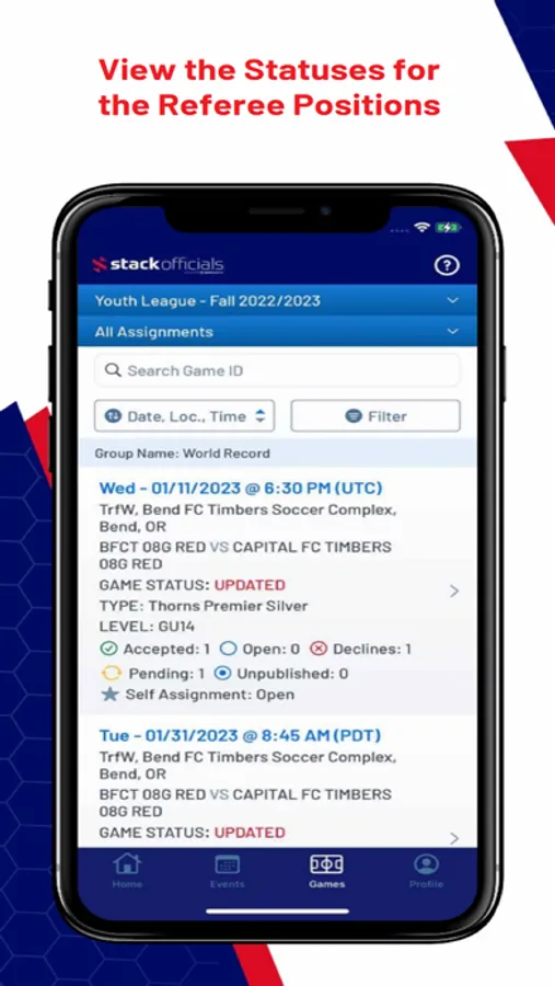 The perfect companion app to Stack Officials where assignors can easily manage their officials schedules.