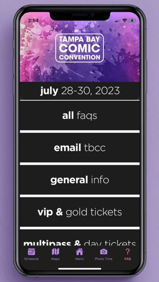 The Tampa Bay Pop Culture and Comic Convention app is your road map to all things TBCC! Download the app prior to the event for updates on guests, the event, tickets, Photo Ops, and easy access to our FAQ. Have your schedule ready by adding panels and Photo Ops to your app when times are announced. The app will help guide you during the show by giving you information about Panels, Photo Ops, Tickets, Celebrity Row, Vendor Floor, and more We can't wait to celebrate pop culture and comics with you on July 28-30, 2023 at the Tampa Bay Convention Center.