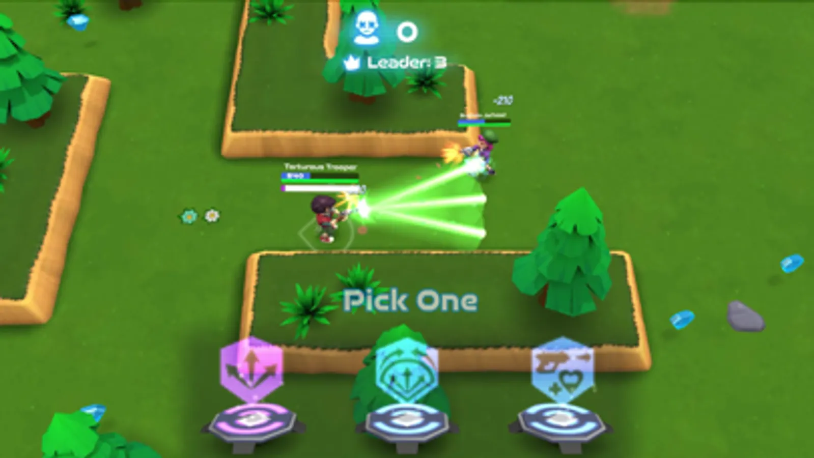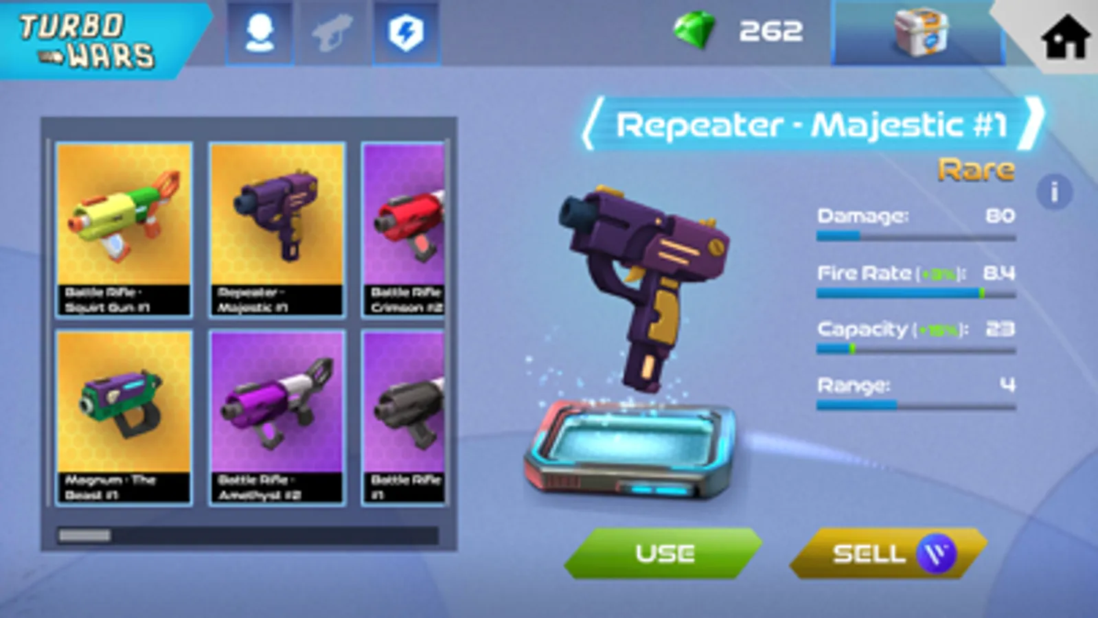 Turbo Wars features exciting real time battles from a top-down perspective. Use one thumb to move and the other to shoot. Pick your character and gun loadout and fight to win!