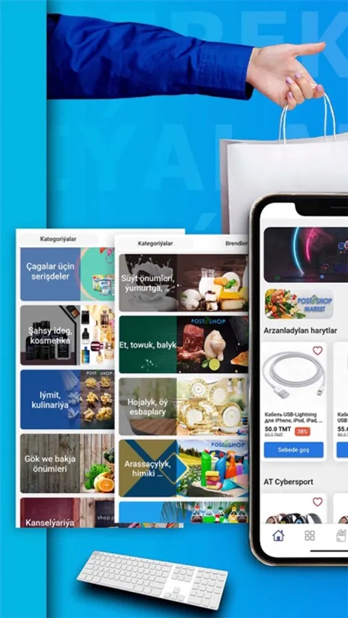 Postshop mobil goşundy ykjam telefonyňyzda girdejili we amatly satyn alyşlar, şeýle hem: