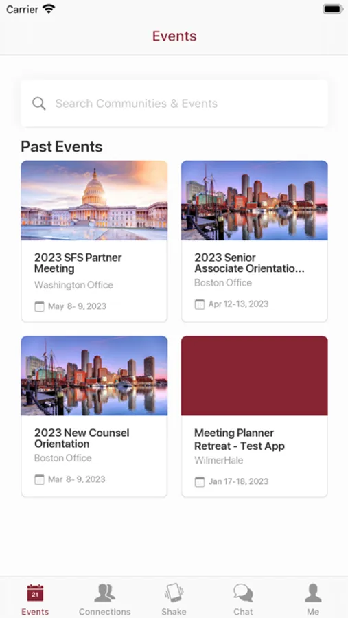 The official mobile app for WilmerHale meetings, trainings, and orientations. Access is invite only. Intended for both internal and external participants at WilmerHale events.