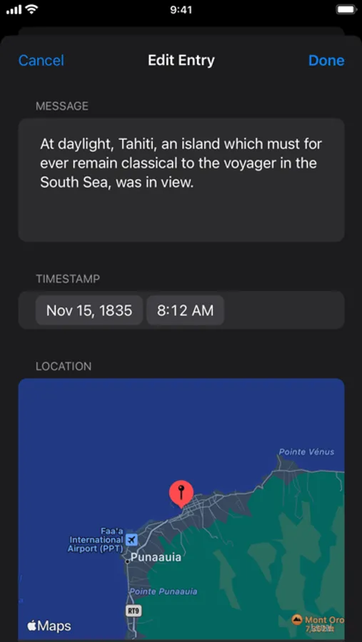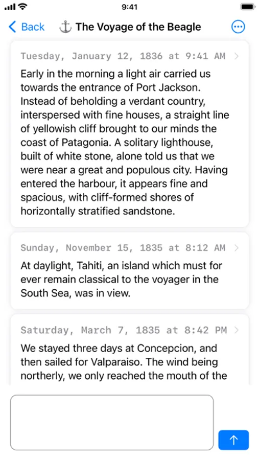 - Scroll and search through entries to get a timeline of events, thoughts, and ideas. Discover when and where your thoughts originated.