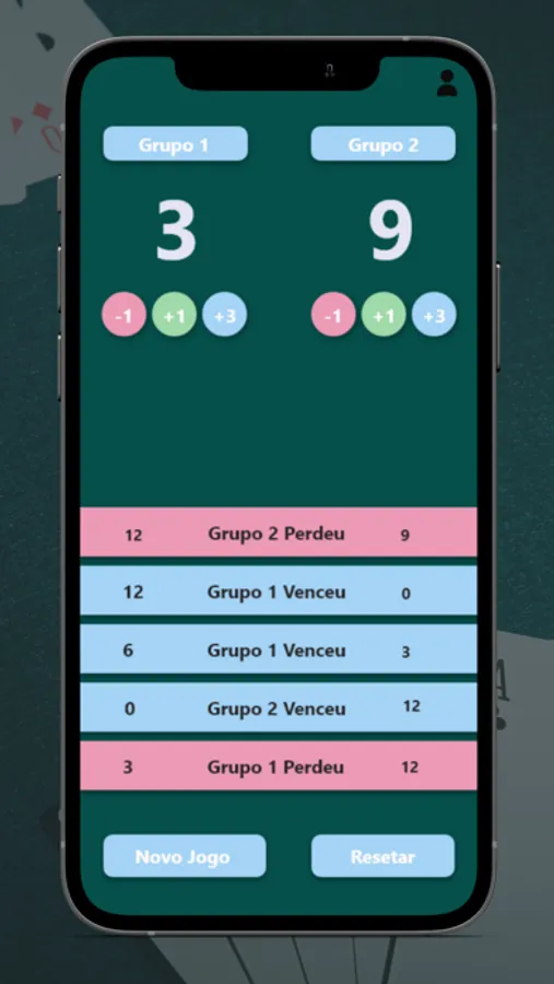 Marque os pontos de sua partida, veja o total de vitórias, defina o placar final para terminar a partida