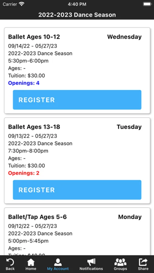 The TAC dance app allows you to manage your account with ease, register for classes, parties, and special events. You'll also receive important notifications about class changes, closings, registration openings, special announcements, and upcoming events.