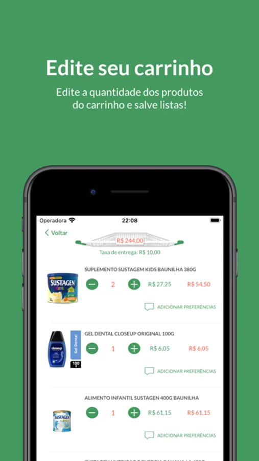 • Adicionar produtos no seu carrinho com um simples tocar e arrastar.