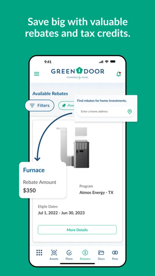 - Update your home profile in Green Door with your new and existing home assets, including appliances and fixtures, HVAC systems, water heaters, building shell and insulation, and smart home technology.