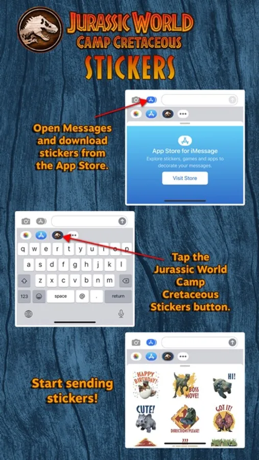 15 different stickers (including animated ones!) from Jurassic World: Camp Cretaceous!