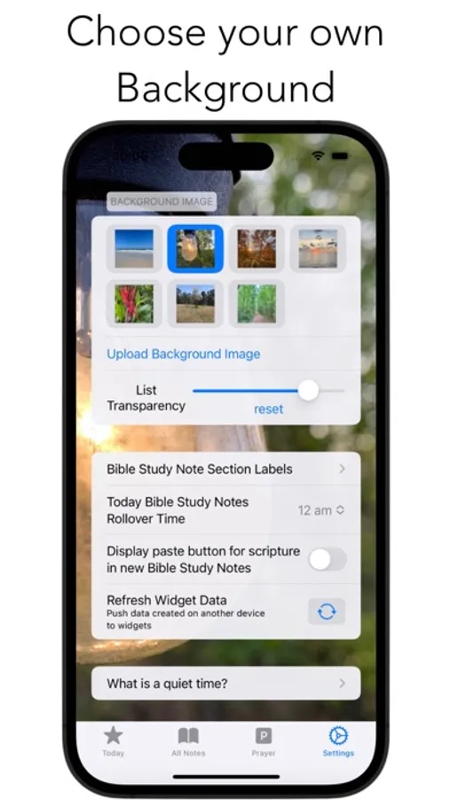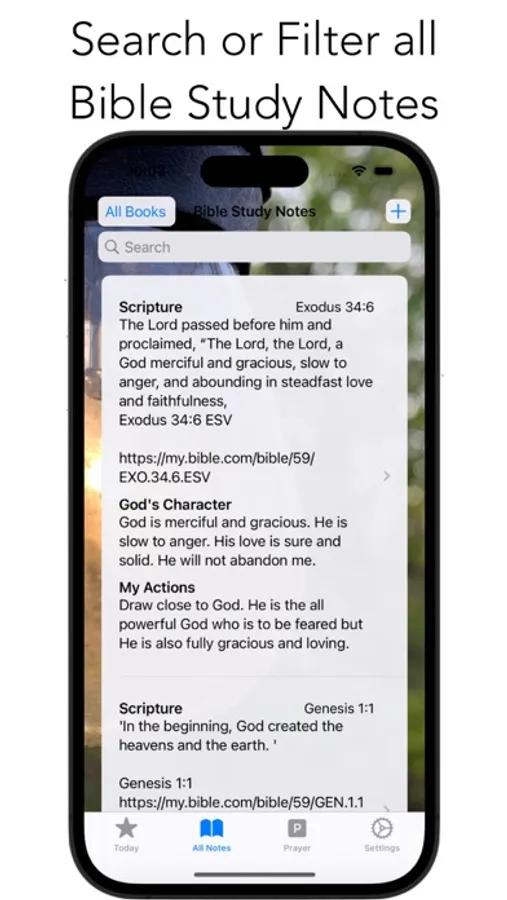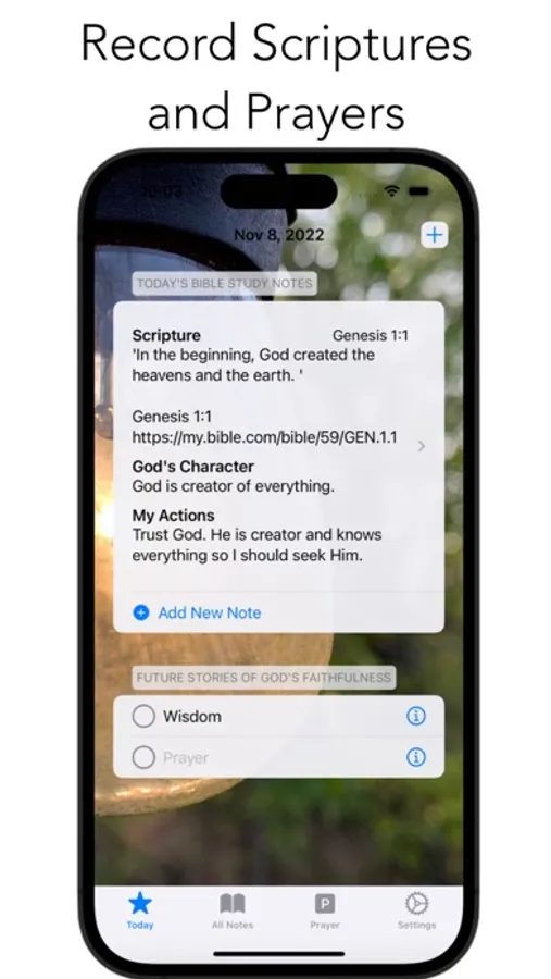 * Quick entering of Bible Study Notes and prayers on the Today tab