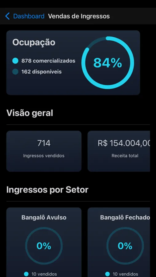 Aplicativo para produtores de eventos acompanharem as vendas de ingressos e fichas de bar de eventos em tempo real. Entre os principais recursos do aplicativo estão: