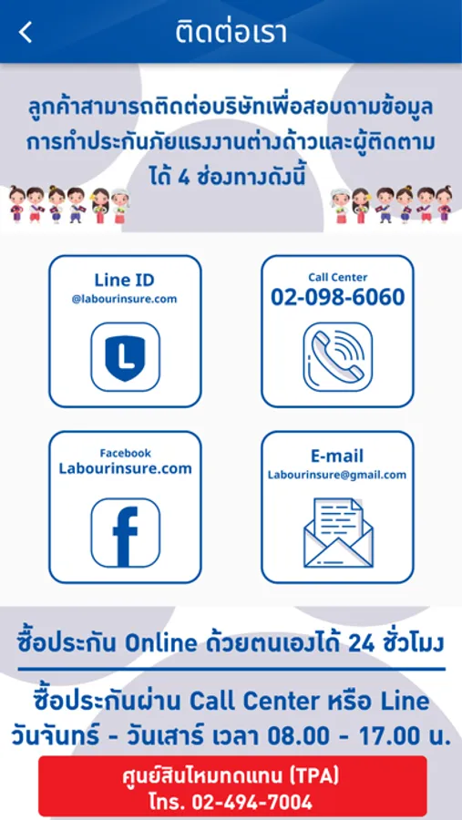 กรมธรรม์ที่ได้รับการยืนยันจากทางบริษัทฯ สามารถใช้แนบเป็นเอกสารประกอบการขึ้นทะเบียน แรงงานต่างด้าวกับกรมการจัดหางานได้