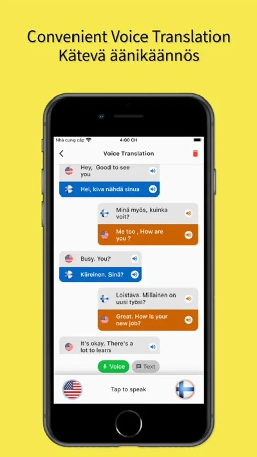 Translate voice, text, image from English to Finnish or Finnish to English very convenient, extremely accurate and efficient. This application is a product of YouPro.