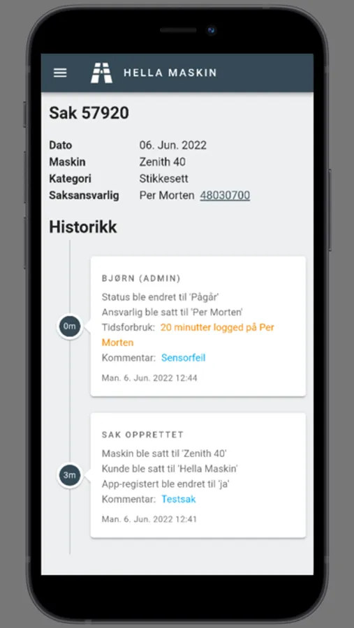 Supportbestilling og maskininformasjon