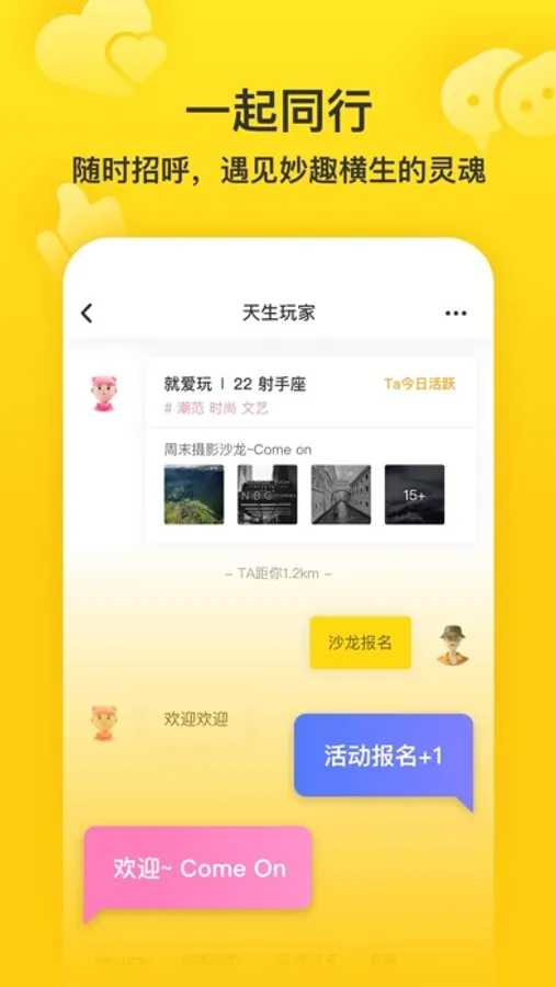 更棒的是,Whatime不仅仅是一款活动分享平台,它也是一款社交APP。你可以认识新朋友,与志同道合的人聊天互动,甚至可能会有一些浪漫的邂逅。当然,你也可以选择和陌生人保持距离,安心享受活动的乐趣。