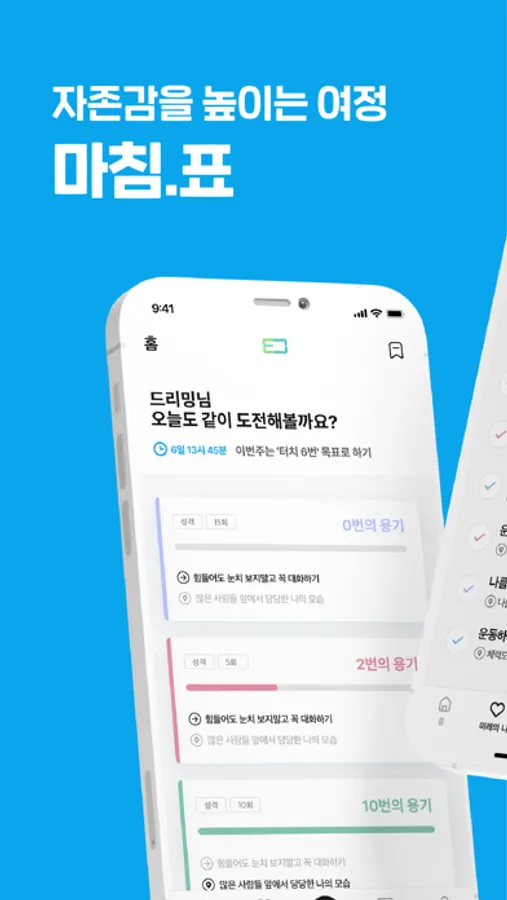 미션, 응원알림, 푸쉬알림 등 다양한 요소들이 있어요, 앱을 이용할 때는 심심하지 않을거에요!