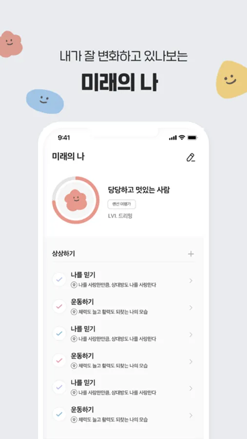 내가 잘 변화하고 있는 건지, 상상했던 것이 무엇인지 보고 싶다면 '미래의 나'를 찾아주세요!