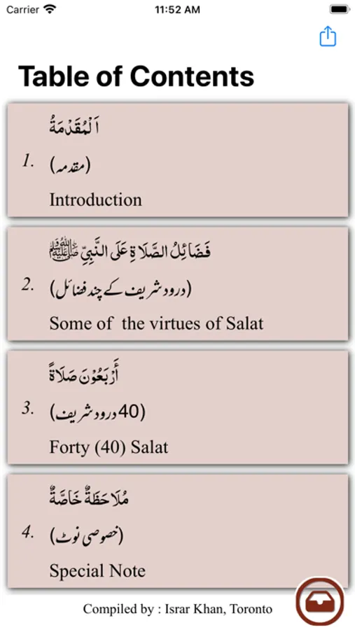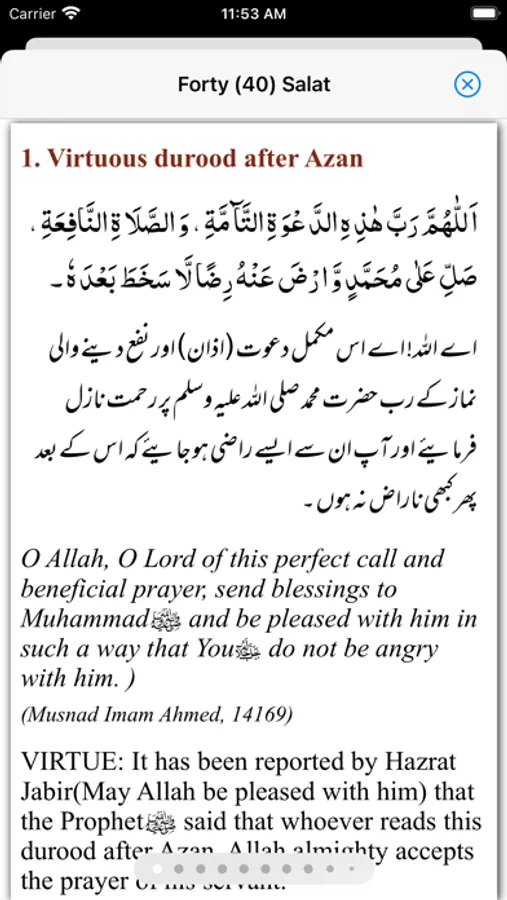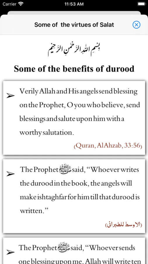 This collection of 40 Salats / Duroods contains the virtues of its reciting. Those who have the desire to fulfill their needs can recite the Salats / Duroods as per the virtues and benefits given in the section. Another great benefit of reciting abundance of Salats / Duroods is that the recitor will be closer to the Prophet (Peace be upon him) in terms of his/her rank (on the Day of Resurrection).