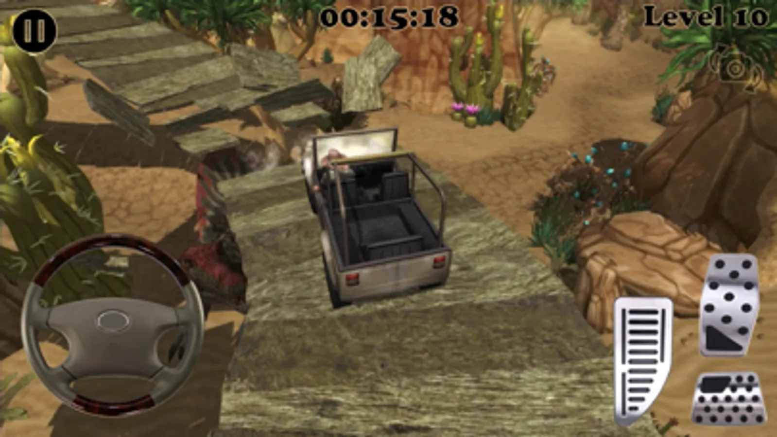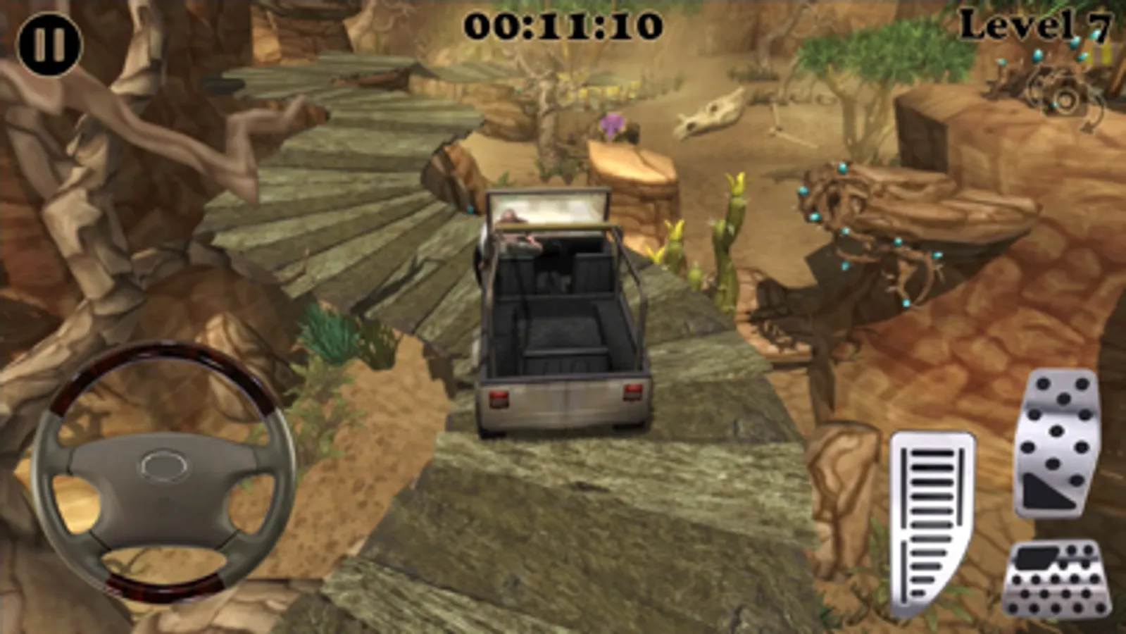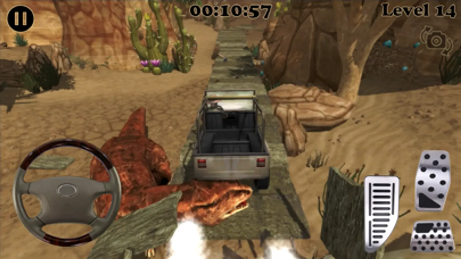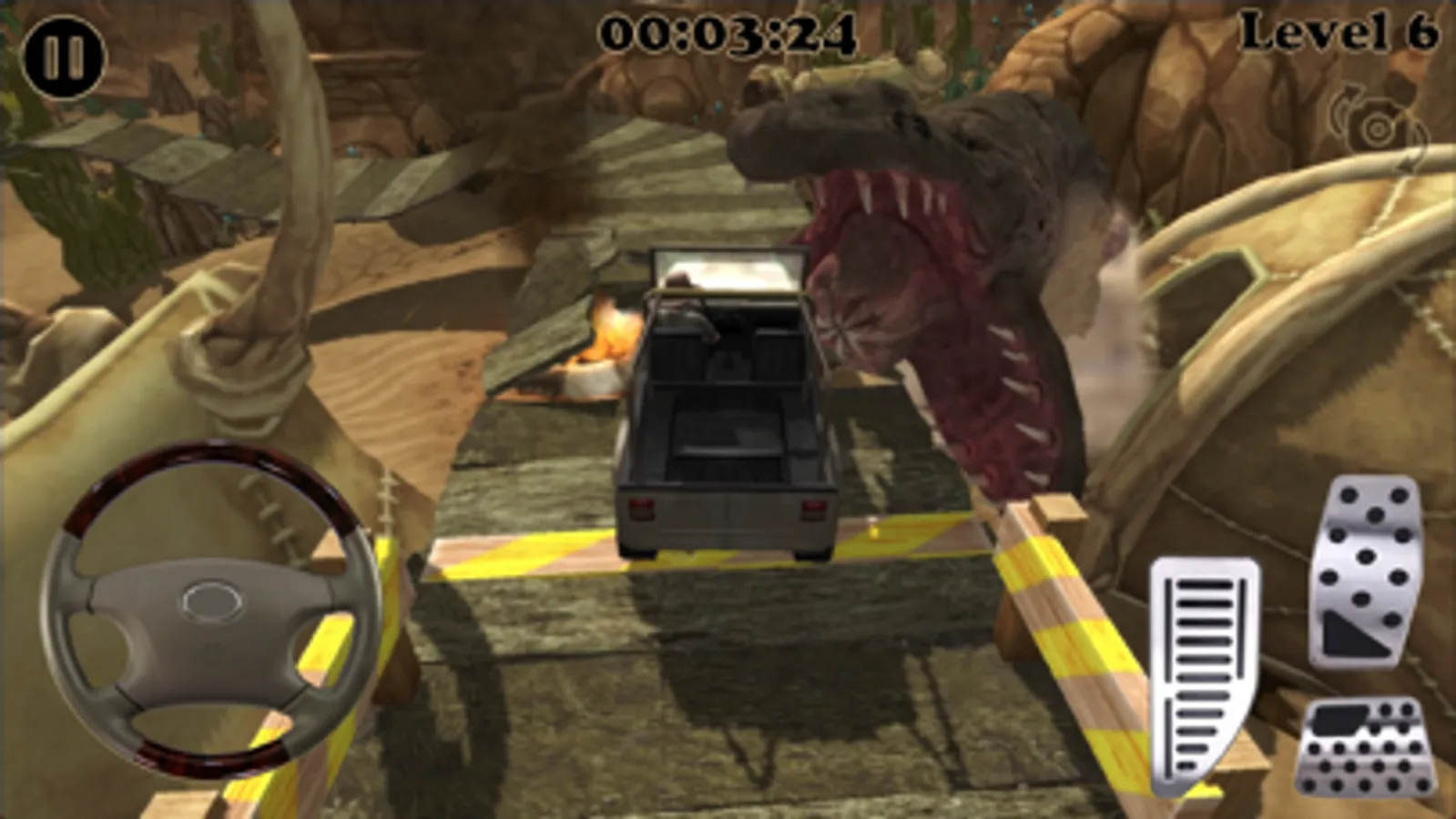 Thrill Seeking and Challenging fun Off-road Car Driving game, Dinosaurs are about and are dangerous. Control your off-road vehicle as you mountain climb through each level, make jumps with this realistic simulation. Try avoiding falling off the edges of the path as you complete the many stages. No time to take in the spectacular Jurassic scenery, try spotting a Dinosaur that if it finds you will try to knock you off your path.