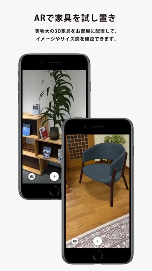 実際に家具を購入する前に、実物大の3D家具を配置して実際のイメージやサイズ感を確認してみましょう。試着感覚で簡単に試せます。