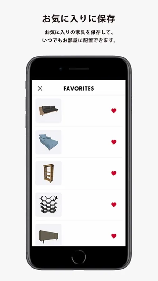気に入った家具をお気に入りリストに登録しましょう。いつでも何度でも配置を試すことができます。
