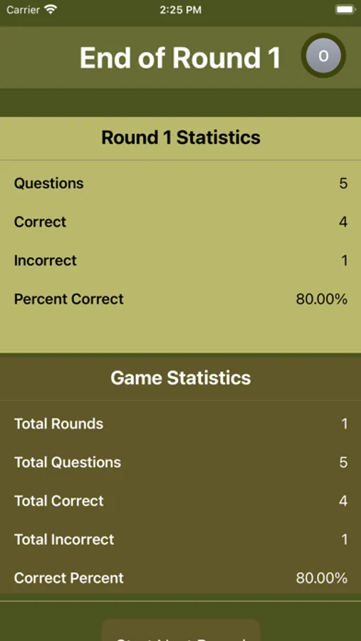 Medium: 20 second timer, 7 questions per round, and up to 2 incorrect answers per round.