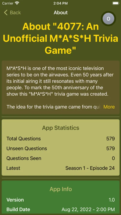 M*A*S*H first debuted on September 17th, 1972 and even 50 years later it is still an iconic and well-loved TV show. To celebrate the anniversary there is a Trivia game just for the TV show. "4077: An Unofficial M*A*S*H Trivia Game" is a fan-made game with all original questions. The questions are all original and not taken from any other sources. They have been created by re-watching the show. New questions will be added over time.