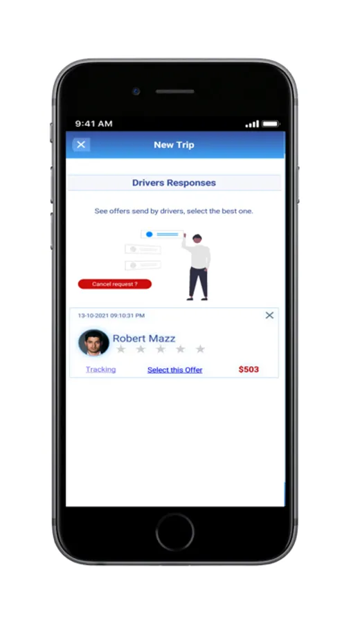- Choose from different prices sent by Drivers