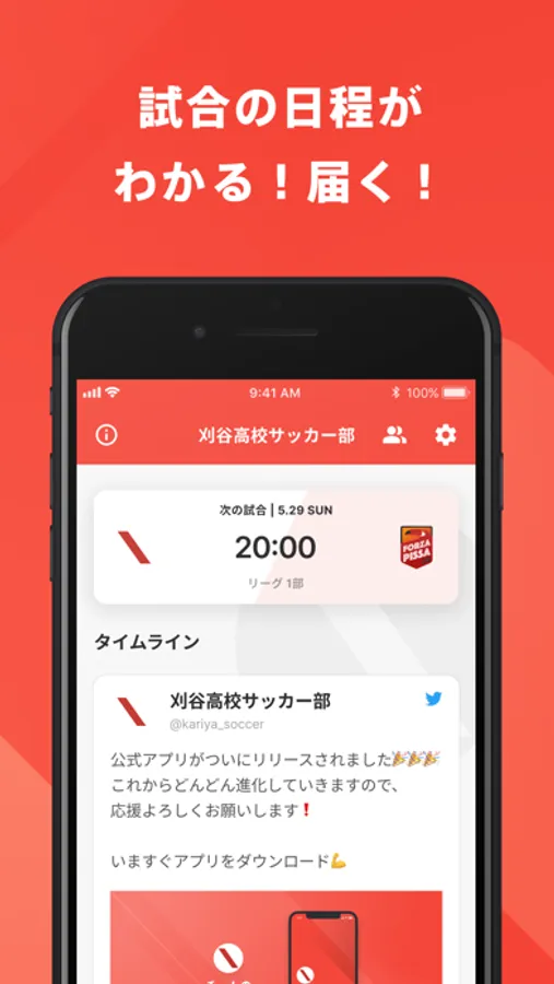 アプリを通じて、チームとの距離がぐっと近くなる。仲間が増える。チームをもっと好きになる!