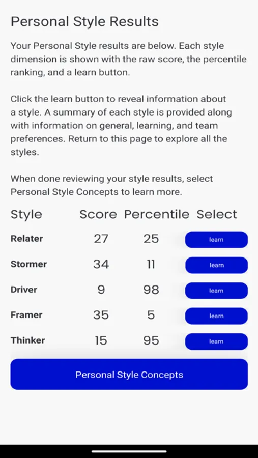 The method for teasing out or "indicating" style tendencies among the five is done through a series of eight word descriptor ranking groups. The descriptor rankings are calculated and compared to a norming sample to reflect the relative strength or preference for each of the five styles.