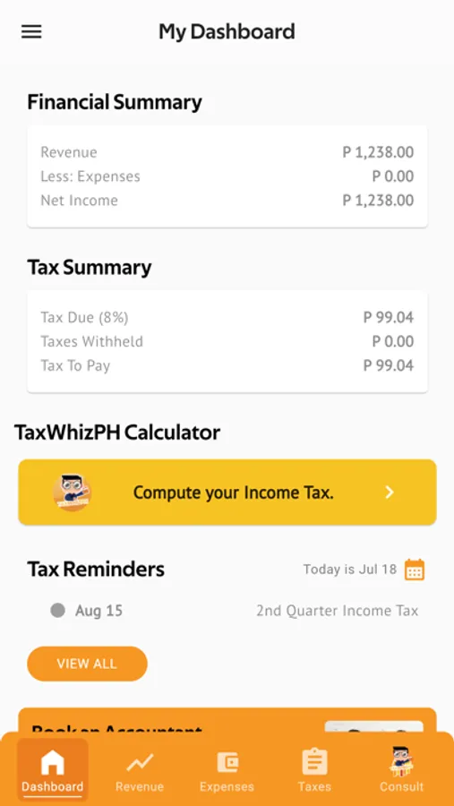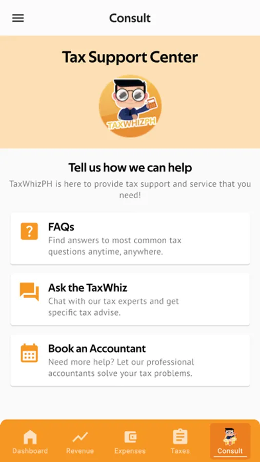 The easiest tax filing for Filipino businesses and freelancers, with tax calendar reminders, tax calculator and tax consultation with the TaxWhiz.