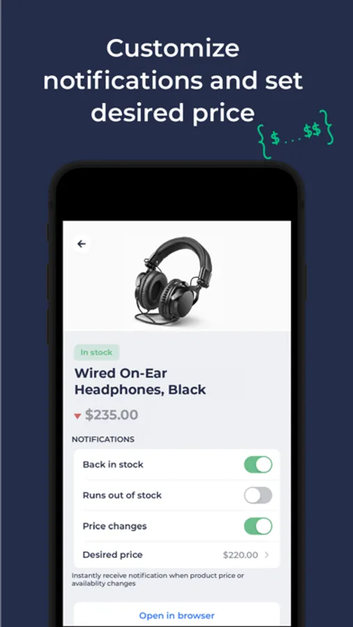 - Instantly receive notification when price drops